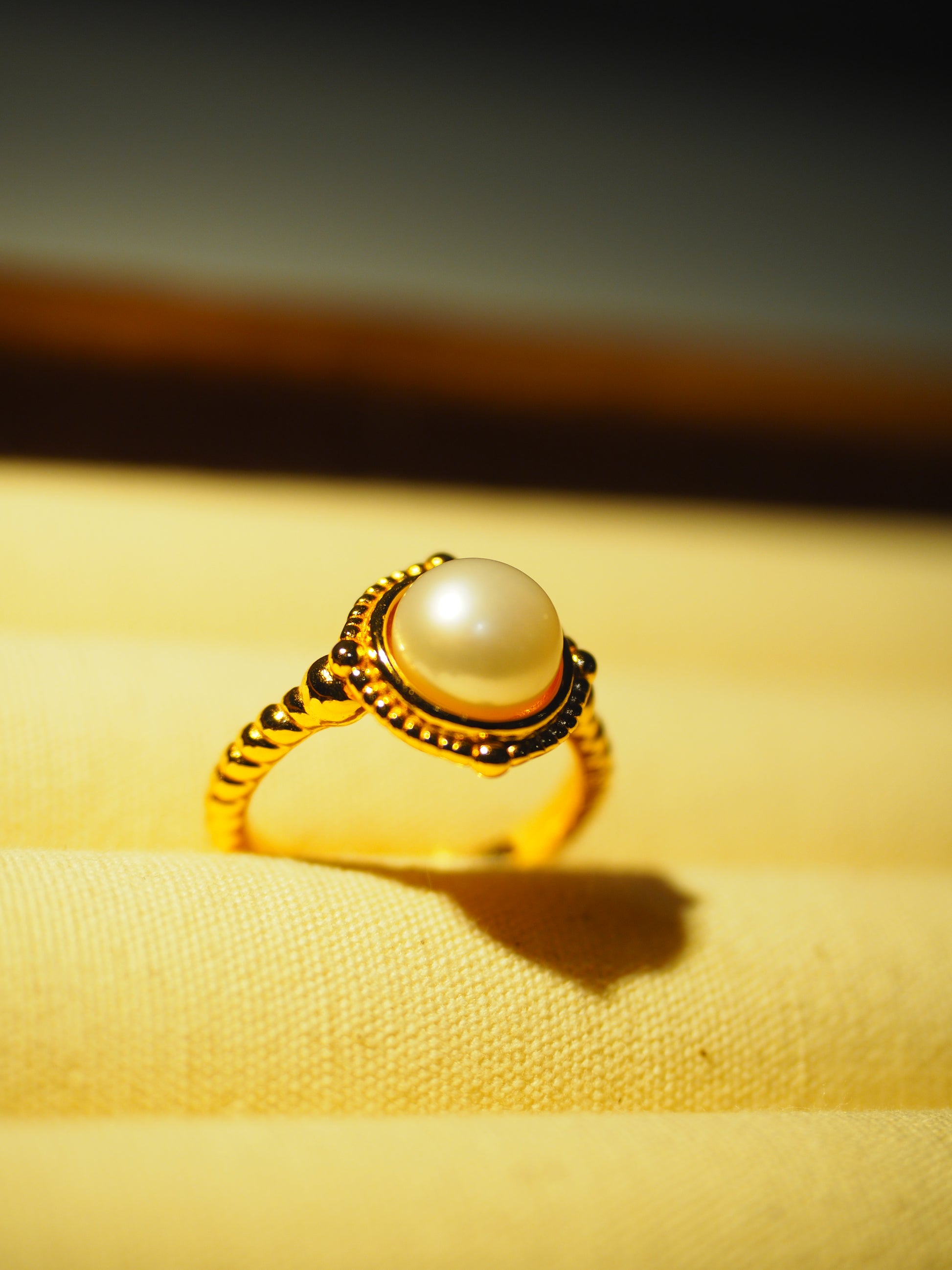 Introducing the GOLDEN EVA, a playful twist on traditional jewelry. Made with gold plated s925 sterling silver and a natural pearl, this open ring adds a touch of elegance and whimsy to any outfit. Shine bright with the GOLDEN EVA.